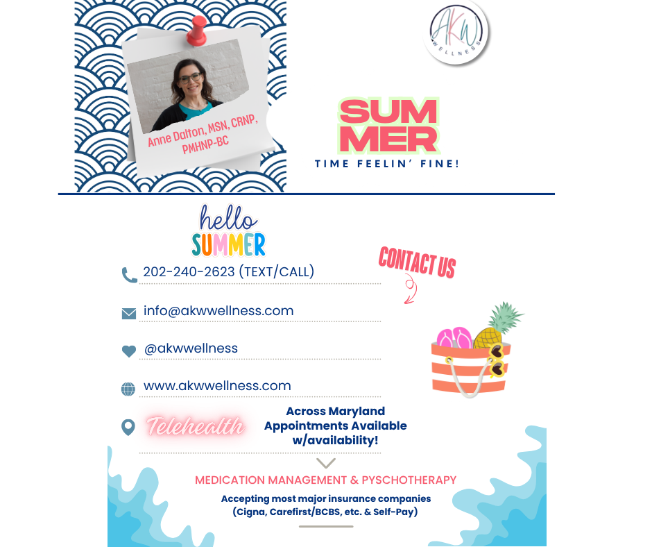 In summary, AKW Wellness offers a compassionate, evidence-based, and secure telehealth option for mental health care in Maryland. Whether you need specialized women’s care, ADHD support, or trauma-informed therapy, we’re here to help. Embrace the convenience without compromise and take the first step towards better mental health today.